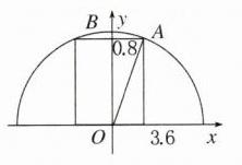 B 解析 建立如图所示的平面直角坐标系,设篷顶距地面的高度为$h$,则$A(0.8,h)$,半圆所在圆的方程为$x^{2}+y^{2}=3.6^{2}$,把点$A$的坐标代入上式可得,$0.8^{2}+h^{2}=3.6^{2}$,解得$h = 4\sqrt{0.77}\approx3.5(m)$。