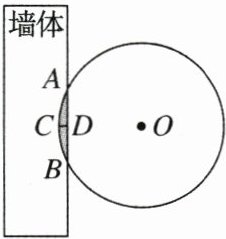 【变式训练】“圆材埋壁”是《九章算术》中的一个问题:“今有圆材,埋在壁中不知大小,以锯锯之,深一寸,锯刀长一尺,问径几何?”其意为:今有一圆柱形木材,埋在墙壁中,不知其大小,用锯去锯该木材,锯口深一寸,锯刀长一尺,问这块圆柱形木材的直径是多少?现有圆柱形木材一部分埋在墙壁中,截面如图所示,已知弦$AB = 1$尺,弓形高$CD = 1$寸,则阴影部分的面积约为(注:$\pi\approx3.14$,$\sin22.5^{\circ}\approx\frac{5}{13}$,$1$尺$ = 10$寸) ( )
