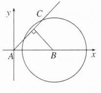 解 所选观景点应使对两景点的视角最大。由平面几何知识知,该点应是过$A$,$B$两点的圆与小路所在的直线相切时的切点。以小路所在直线为$x$轴,点$B$在$y$轴正半轴上建立平面直角坐标系(图略)。由题意,得$A(\sqrt{2},\sqrt{2})$,$B(0,2\sqrt{2})$,设圆的方程为$(x - a)^{2}+(y - b)^{2}=b^{2}(b>0)$,由$A$,$B$两点在圆上,得$\begin{cases}a = 0\\b = \sqrt{2}\end{cases}$或$\begin{cases}a = 4\sqrt{2}\\b = 5\sqrt{2}\end{cases}$,由实际意义知$a = 0$,$b = \sqrt{2}$,所以圆的方程为$x^{2}+(y - \sqrt{2})^{2}=2$,切点为$(0,0)$,观景点应设在$B$景点在小路的投影处。