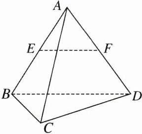 (2) $\overrightarrow{EF}\cdot\overrightarrow{BD}=\frac{1}{2}\overrightarrow{BD}\cdot\overrightarrow{BD}=\frac{1}{2}|\overrightarrow{BD}||\overrightarrow{BD}|\cos\langle\overrightarrow{BD},\overrightarrow{BD}\rangle=\frac{1}{2}\times1\times1\times\cos0^{\circ}=\frac{1}{2}$,所以 $\overrightarrow{EF}\cdot\overrightarrow{BD}=\frac{1}{2}$。