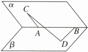 【变式训练】如图,已知一个$60^{\circ}$的二面角的棱上有两点$A$,$B$,$AC$,$BD$分别是在这两个面内且垂直于$AB$的线段。又知$AB = 4$,$AC = 6$,$BD = 8$,求$CD$的长。