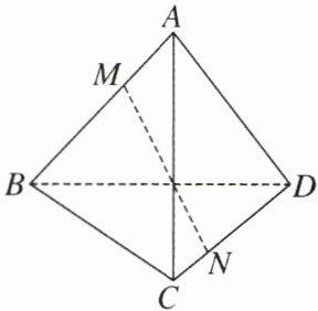 【例4】 在正四面体$ABCD$中,棱长为$a$,$M$,$N$分别是棱$AB$,$CD$上的点,且$MB = 2AM$,$CN = \frac{1}{2}ND$,求$MN$。