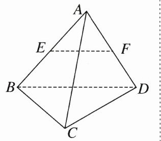 解析 $\overrightarrow{EF}=\frac{1}{2}\overrightarrow{BD}$,$\overrightarrow{BD}\cdot\overrightarrow{BC}=2\times2\times\cos\frac{\pi}{3}=2$,故 $|\overrightarrow{BC}-\overrightarrow{EF}|^{2}=|\overrightarrow{BC}-\frac{1}{2}\overrightarrow{BD}|^{2}=\overrightarrow{BC}^{2}-\overrightarrow{BC}\cdot\overrightarrow{BD}+\frac{1}{4}\overrightarrow{BD}^{2}=4 - 2+\frac{1}{4}\times4 = 3$。故 $|\overrightarrow{BC}-\overrightarrow{EF}|=\sqrt{3}$。又因为 $\overrightarrow{EF}=\frac{1}{2}\overrightarrow{BD}=\frac{1}{2}(\overrightarrow{AD}-\overrightarrow{AB})$,故 $\overrightarrow{AC}\cdot\overrightarrow{EF}=\frac{1}{2}\overrightarrow{AC}\cdot(\overrightarrow{AD}-\overrightarrow{AB})=\frac{1}{2}(\overrightarrow{AC}\cdot\overrightarrow{AD}-\overrightarrow{AC}\cdot\overrightarrow{AB}) = 0$,因为 $\langle\overrightarrow{EF},\overrightarrow{AC}\rangle\in[0,\pi]$,所以 $\langle\overrightarrow{EF},\overrightarrow{AC}\rangle=\frac{\pi}{2}$。