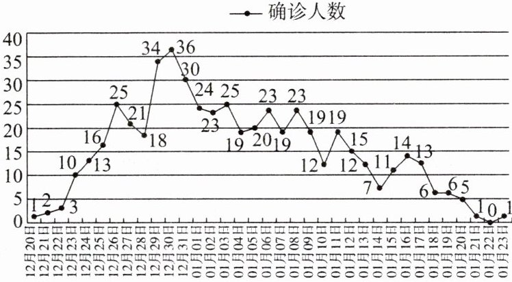 某地某段时间流感每日确诊病例变化曲线如图所示. 设该地这段时间的流感每日确诊人数按日期先后顺序构成数列$\{a_{n}\}$.