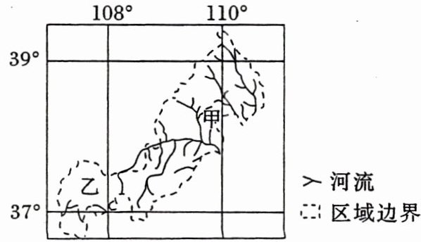 (2)图示甲、乙两地区地名中“河”“沟”“湾”等出现的比例很高,表明乙( )