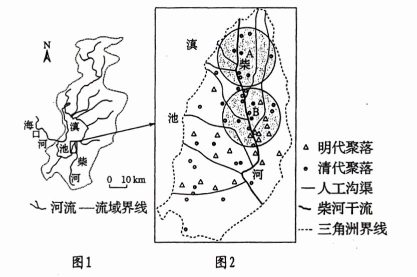 (1)说明明清时期人类活动对柴河三角洲面积扩大的影响。(6 分)