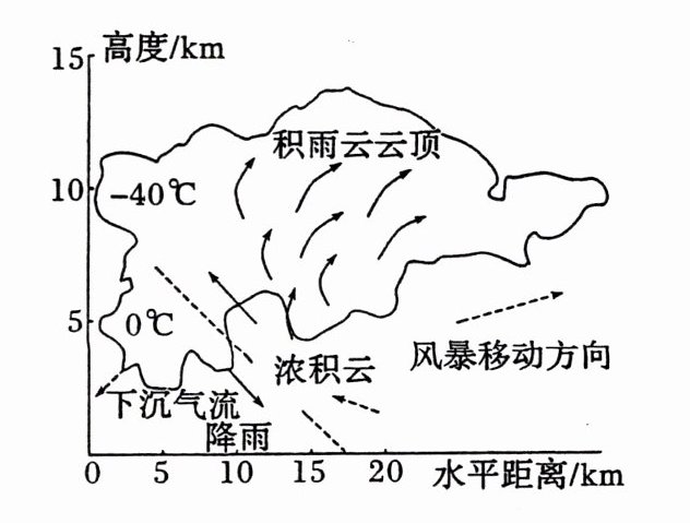 (2024·湖南省阶段性检测)一般每年5月份过后,我国各地进入强对流天气的高发期,往往伴有雷暴、大风等现象。下图示意雷暴云的结构。据此完成4~6题。