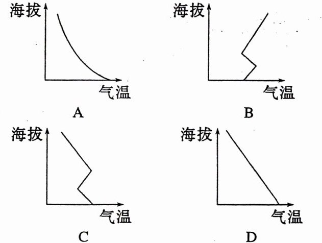 1. 下列四图最可能正确表示此时图示区域气温垂直变化状况的是 ( )