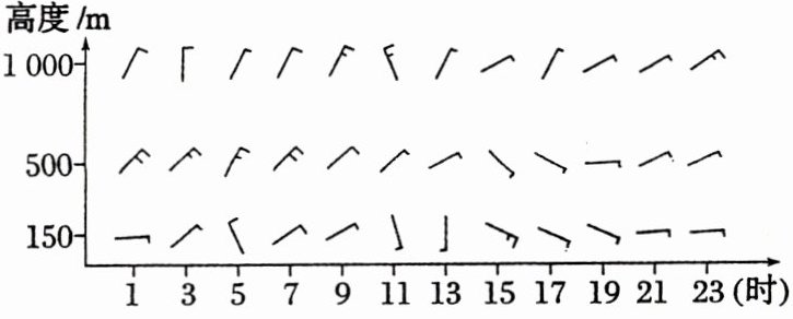 [典例](2022·全国乙卷)我国一海滨城市背靠丘陵,某日海陆风明显。下图示意当日该市不同高度的风随时间的变化。据此完成(1)~(3)题。
