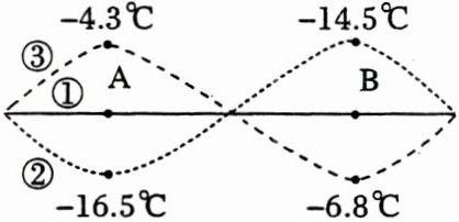(2024·河北邢台六校联考)如图为 30°N 亚洲大陆和太平洋之间的气温、气压分布图,近地面 A 对应亚洲大陆,B 对应太平洋,其中①为 5 500 米等高面,②为 1 月份 500 hPa 等压面,③为 7 月份 500 hPa 等压面。据此完成 5~6 题。