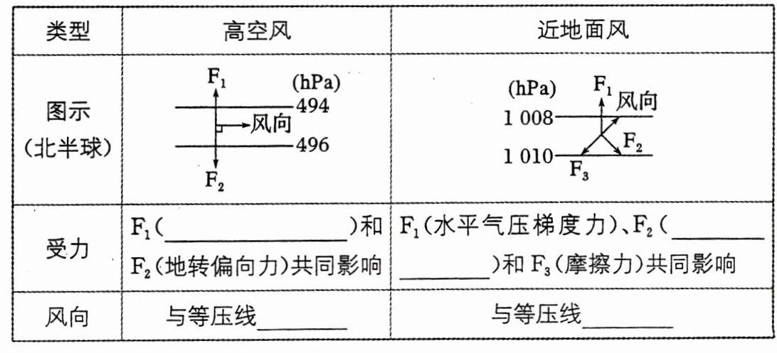 A ______ , ______ 于等压线,由 ______ 压指向 ______ 压,影响 ______ ;