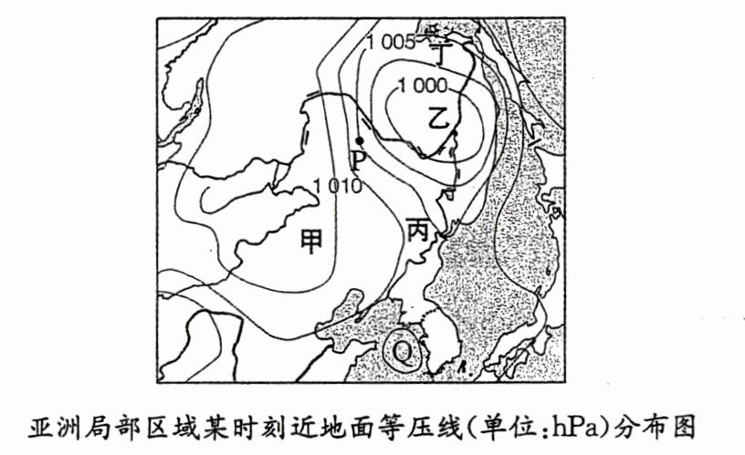 2. 甲、乙、丙、丁四地中的气压可能与 Q 地相等的是( )