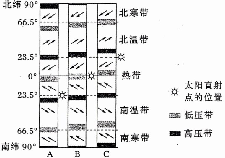 (1) 图中 A 代表冬至日,B 代表 ________分日,C 代表 ________日。(填节气)