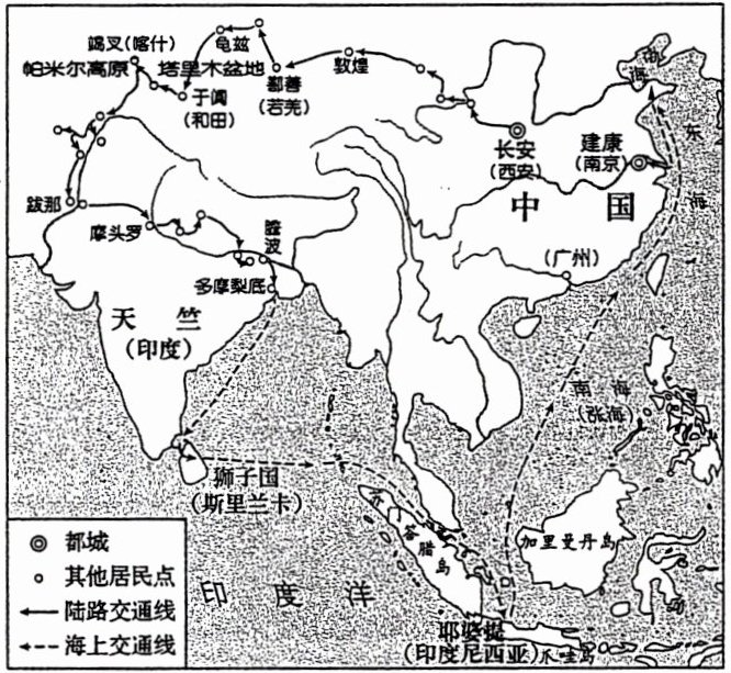 于中国与南亚陆海交通的地理文献。下图为“法显求
