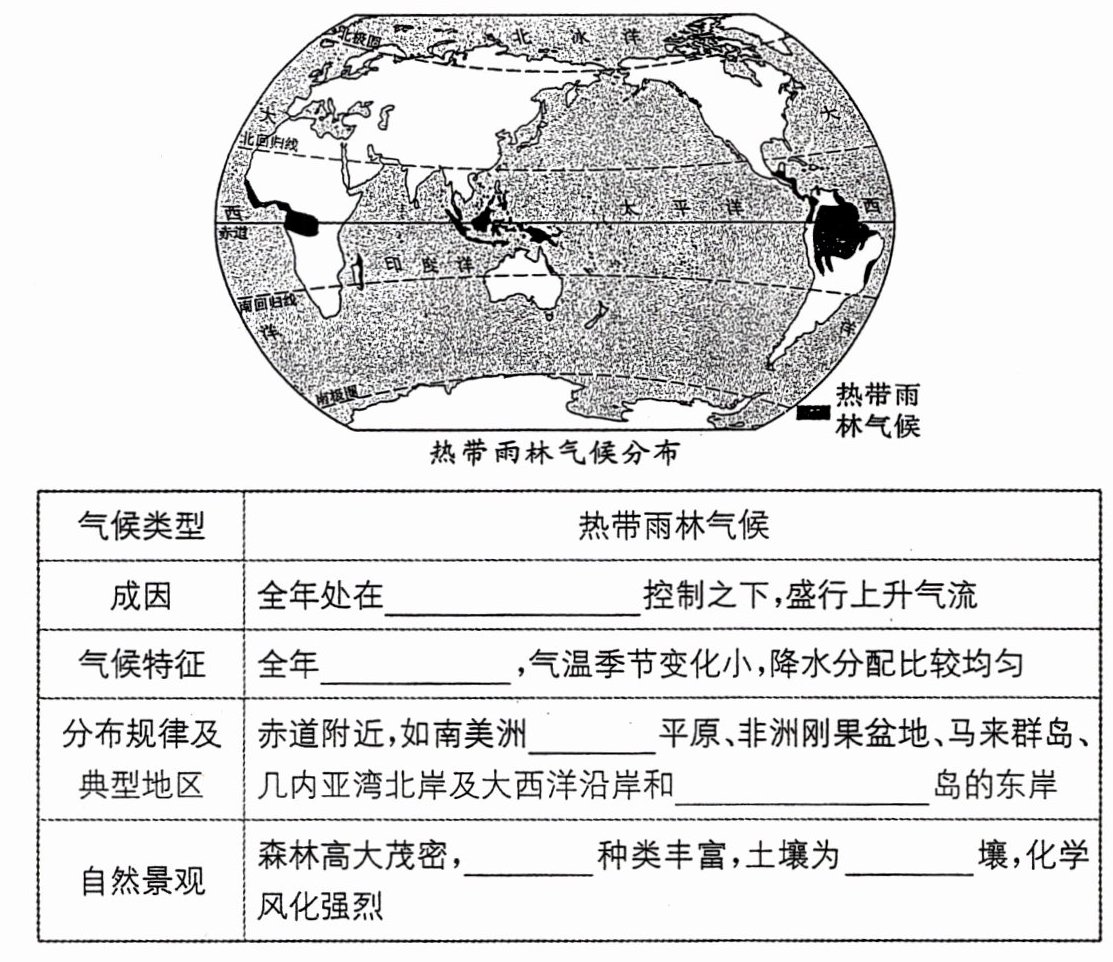 1. 赤道低气压带 高温多雨 亚马孙 马达加斯加 生物 砖红