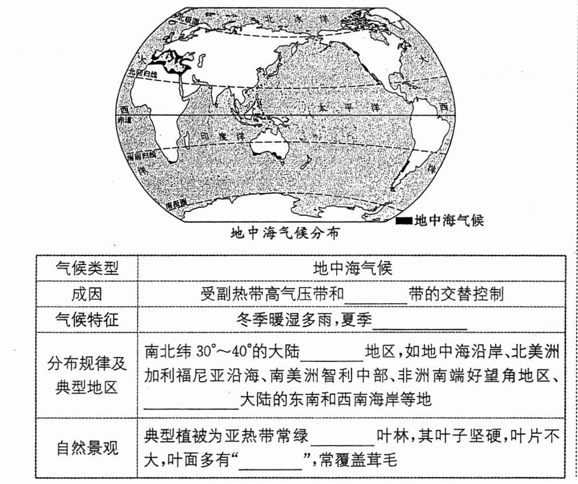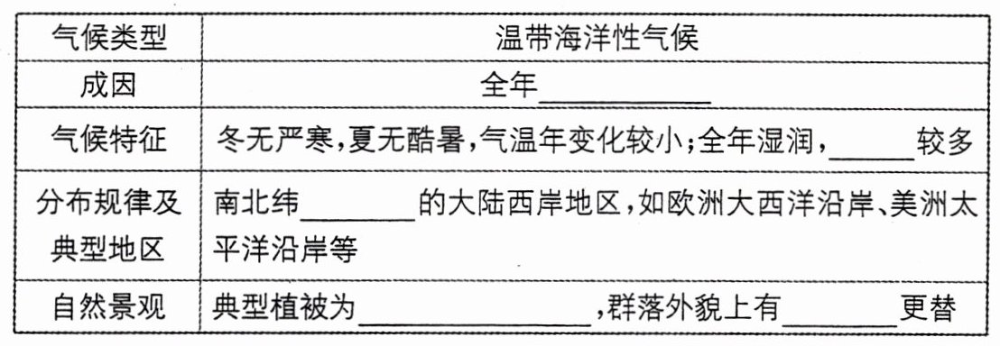 2. 盛行西风 冬雨 40°~60° 温带落叶阔叶林 季相