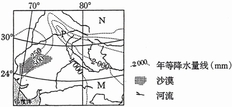 1. 图中P地降水量较南北两侧多的原因有( )