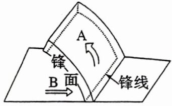 (1)结构特征:图中 A ______气团在上,B ______气团在下,锋面向______气团一侧倾斜。