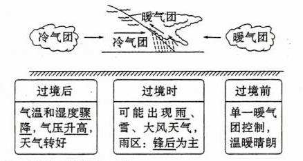 (2)天气特征:锋面附近常伴有______、______、大风等天气现象。