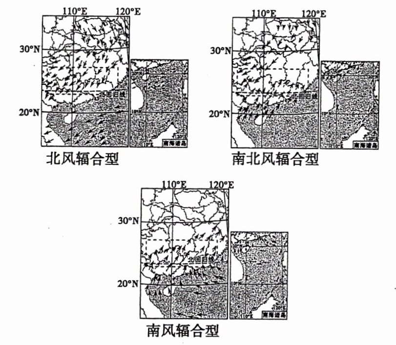 (1)与北风辐合型相比,南风辐合型关键区域降水更多。下列解释合理的是 ( )