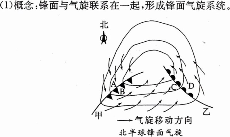 (1)概念:锋面与气旋联系在一起,形成锋面气旋系统。