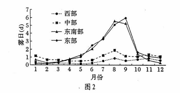 3. 影响图示区域平均雾日峰值差异的主要因素是( )