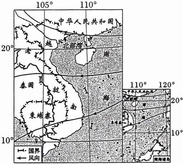 (2021·山东卷)“克拉香天气”出现在越南沿海地区,是一种持续时间较长的雾天伴随濛濛细雨的天气,这种天气在越南北部沿海比南部沿海出现的概率更大。下图示意克拉香天气出现时段的风向。据此完成1~2题。