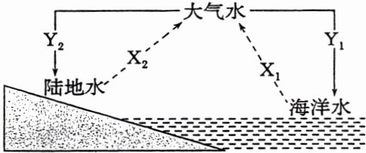 1. D [由于存在水汽输送,X₁未完全转化为Y₁,因此X₁>Y₁,A、C两项错误;由于存在入海径流,因此Y₂>X₂,B项错误;陆地降水总量不及海洋,即Y₁>Y₂,水体转化量由大到小的排序是X₁>Y₁>Y₂>X₂,故选D项。] 2. A [X₂是陆地蒸发。修建水库和引水灌溉,增加地表水量,蒸发量加大,B、D两项错误;平整土地,地表径流历时延长,蒸发占比加大,C项错误;破坏植被,涵养水源能力降低,植被蒸腾作用减弱,X₂下降,故选A项。]