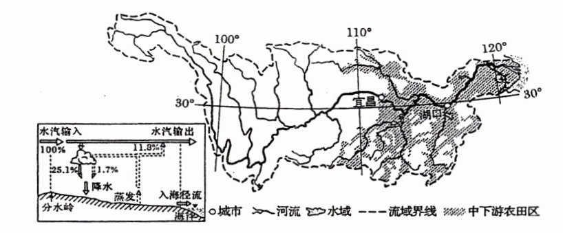 材料二 下图为长江流域水循环简图及长江流域示意图。