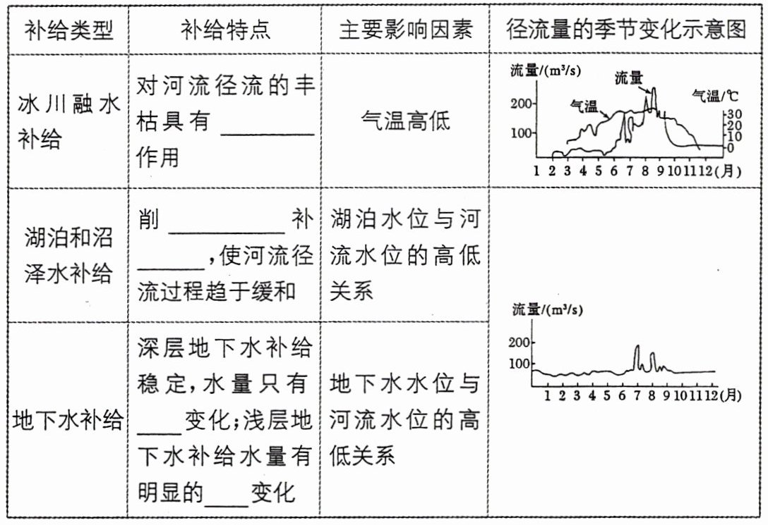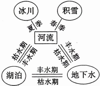 在下图中添加箭头以表示水体之间的相互补给关系: