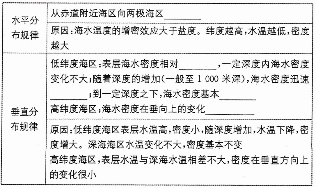 | 高纬度海区 | 表层盐度较低,随深度增加,盐度升高 |
