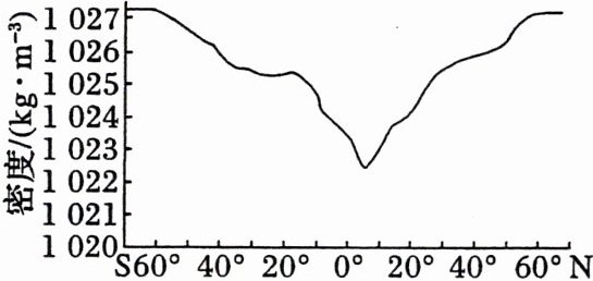 (1)海洋表层海水盐度随纬度变化规律。