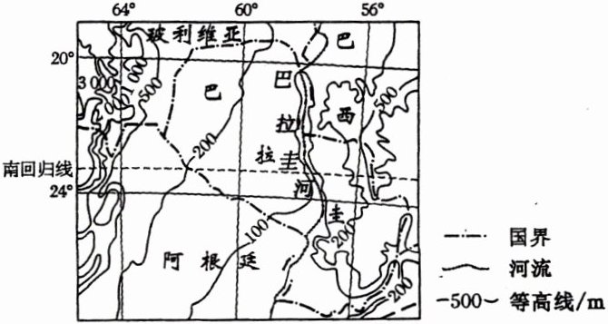 地势较低,海拔在500米以下;以平原为主;地势自巴拉圭河(中部)向两侧逐渐升高。