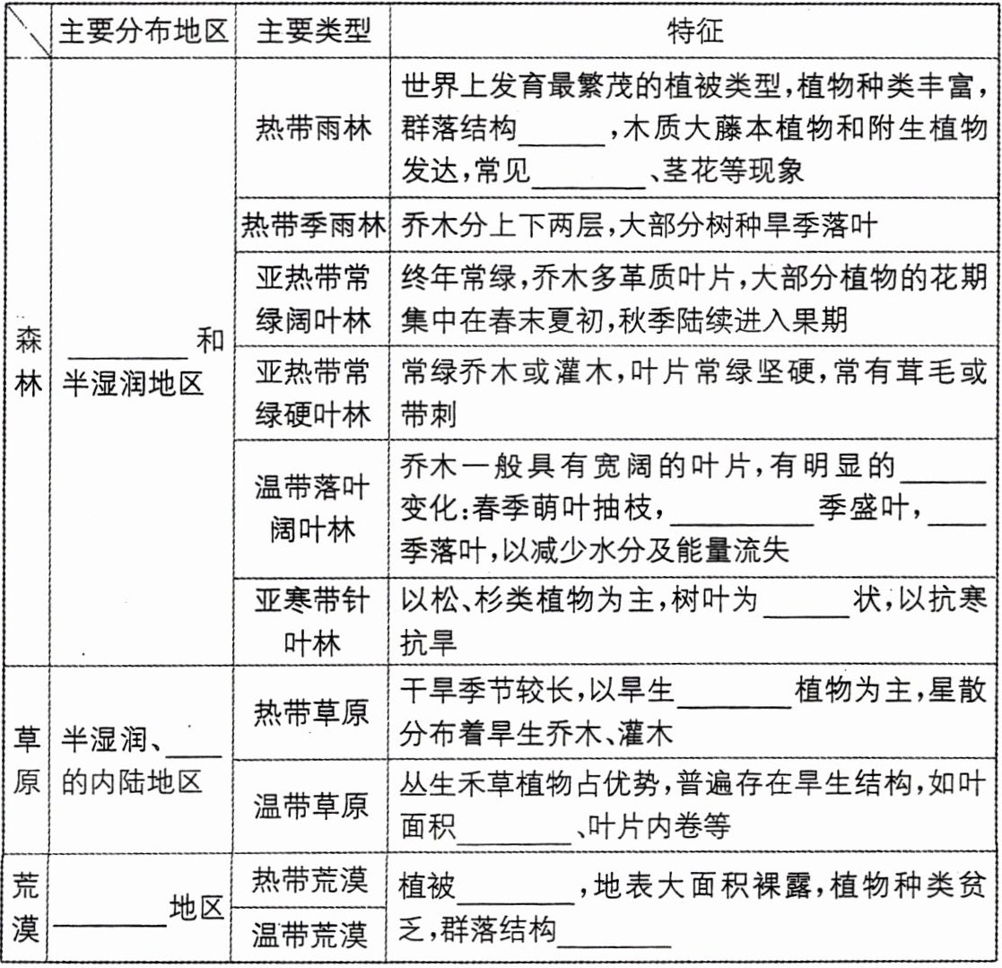 1. 概念:植被是覆盖一个地区的各类__________的总称。