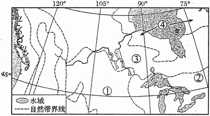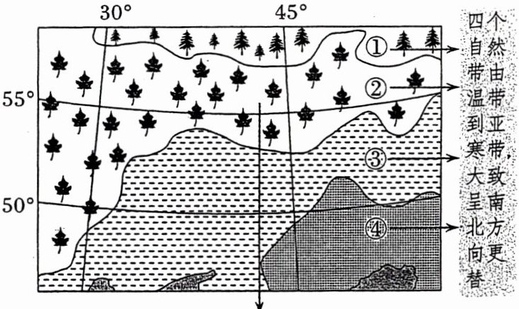 (1)图示①②③④自然带分布体现的地域分异规律是 ( )