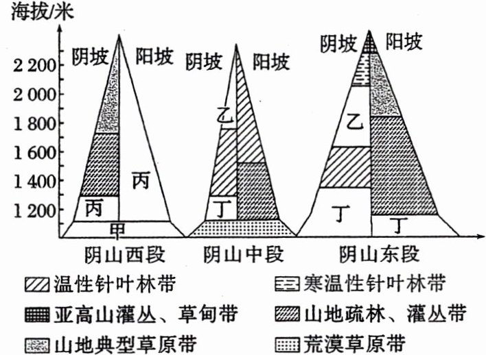 (2024·青岛市重点中学高三联考)下图为“阴山山脉不同地段垂直带分布示意图”。读图,完成1~2题。