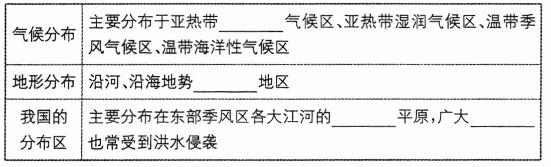 (2)低洼 2. 季风 低洼 中下游 山区 3.