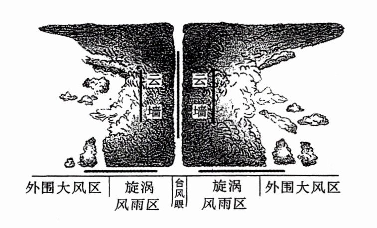 副热 12 强冷空气 冻害 [绘图] 提示 云墙气流上升,台风眼气流下沉,水平方向由外围流向台风眼。
