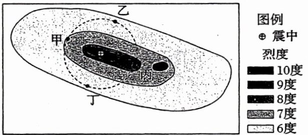 1.A [陆地地壳的平均厚度约为33 km,青海当地的地壳厚度应更厚,此次地震的震源深度17 km,所以震源位于地壳。故选A。] 2.C [一次地震只有一个震级,四地震级相同,A错误。四地中丙处烈度最高,破坏最强,B错误,C正确。四地均位于以震中为圆心的圆上,震中距相同,D错误。]