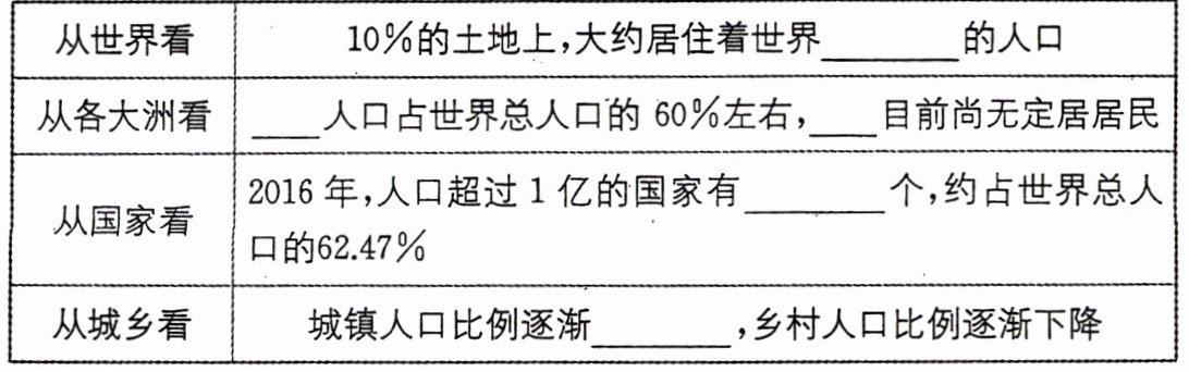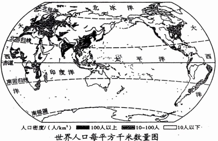 (1)人口分布:指一定时期人口在一定地区范围的 _______状况,通常以_______ 来衡量。
