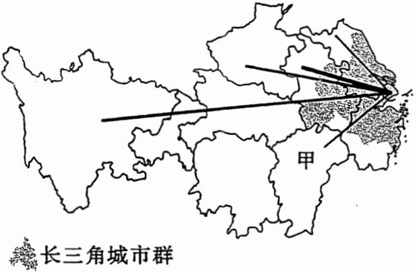 (2022·6月浙江卷)下图为2017年长三角城市群流入人口的主要来源分布图,图中线条宽度与流入人口占比相关,线条越宽占比越高。完成1~2题。