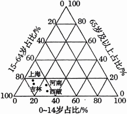 (2024·江苏淮安模拟)抚养比是指非劳动年龄人口与劳动年龄人口数之比。下图为我国部分省级行政区2020年不同年龄段人口占比统计图。据此完成6~7题。