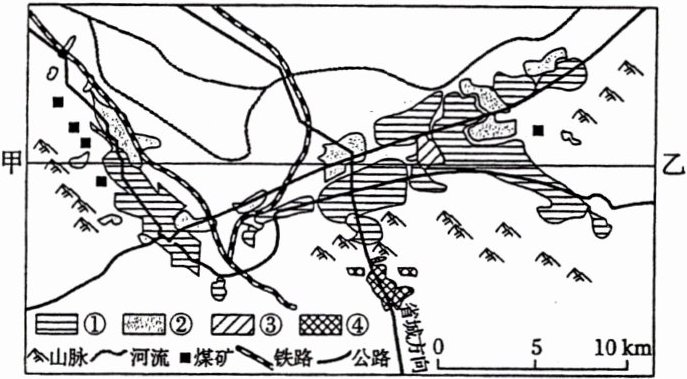 2. 乙地附近比例最大的用地类型可能是 ( )