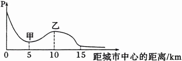 (海南卷)某中心城市,各方向发展比较均衡,城市中心附近人口和产业分布过于集中,交通拥堵,人居环境较差。下图示意该城市某个方向的土地价格(P)变化。据此完成1~2题。