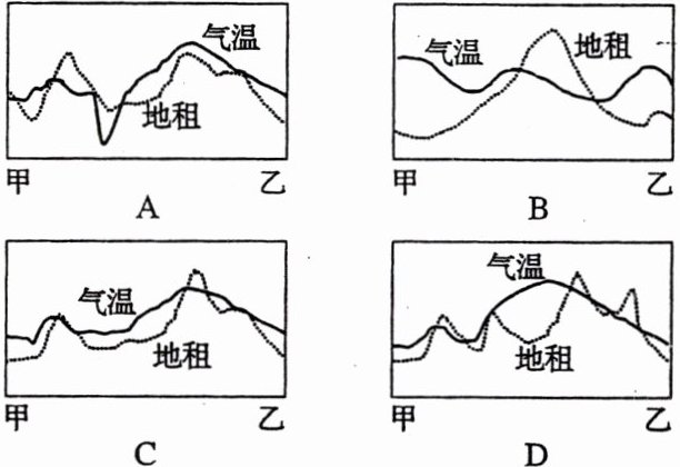 4. 沿甲—乙方向,气温、地租变化趋势曲线最有可能的是 ( )