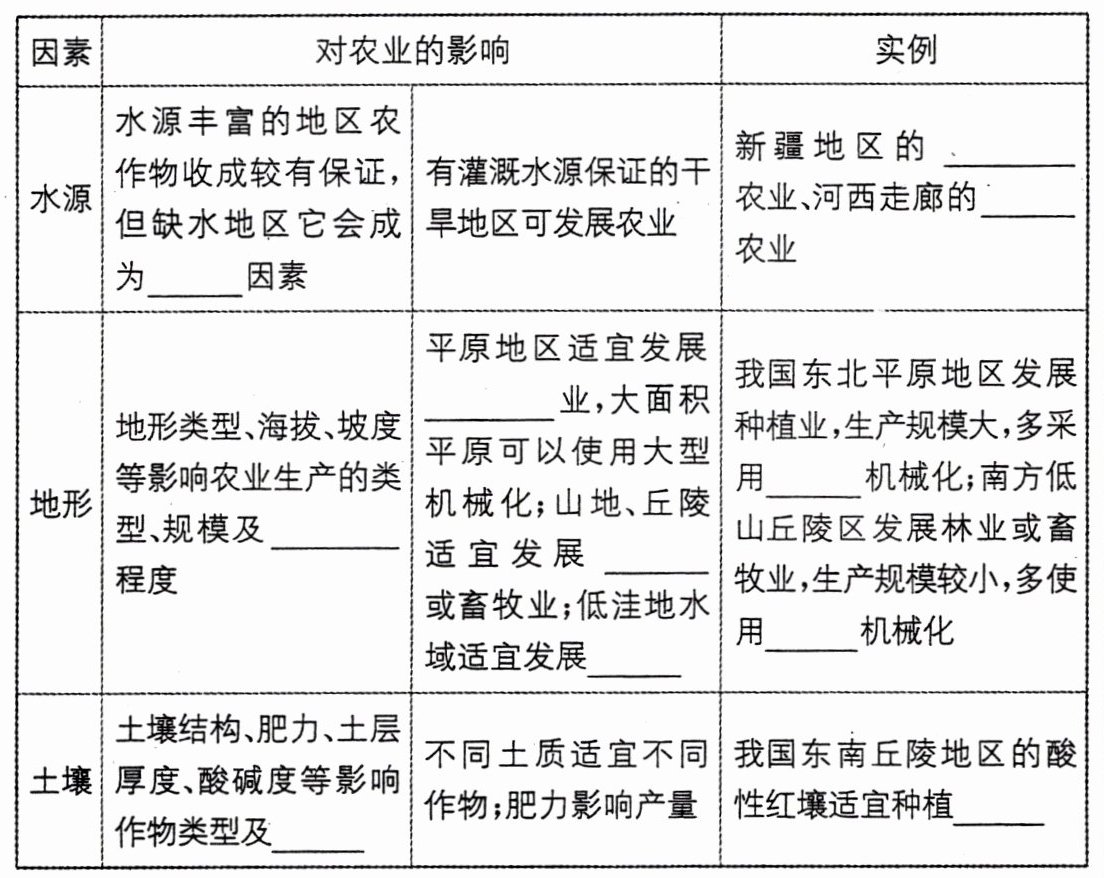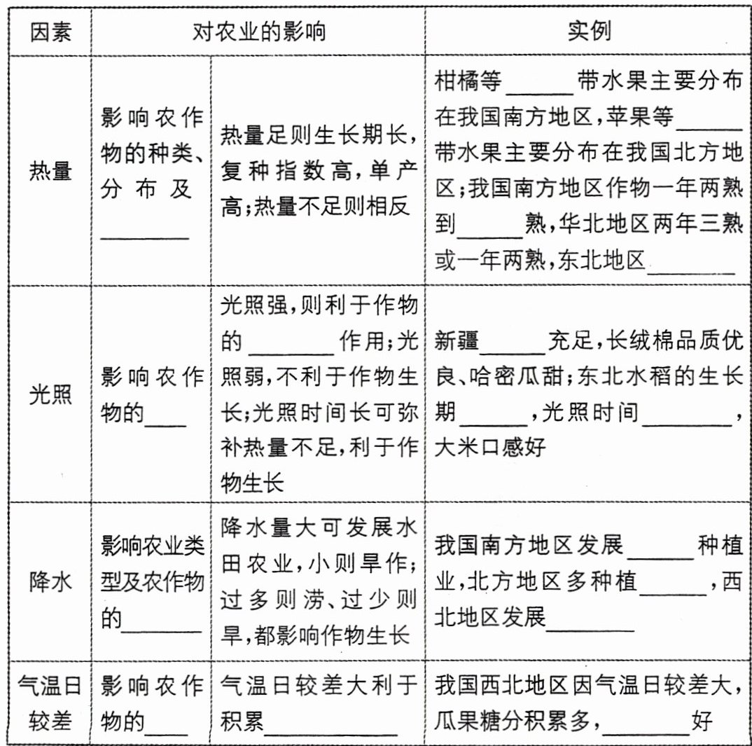 (1)①复种指数 亚热 暖温 三 一年一熟 品质 光合 光照 长 长 分布 水稻 小麦 畜牧业 品质 营养物质 品质 ②限制性 绿洲 灌溉 机械化 种植 林业 渔业 大型 小型 产量 茶树