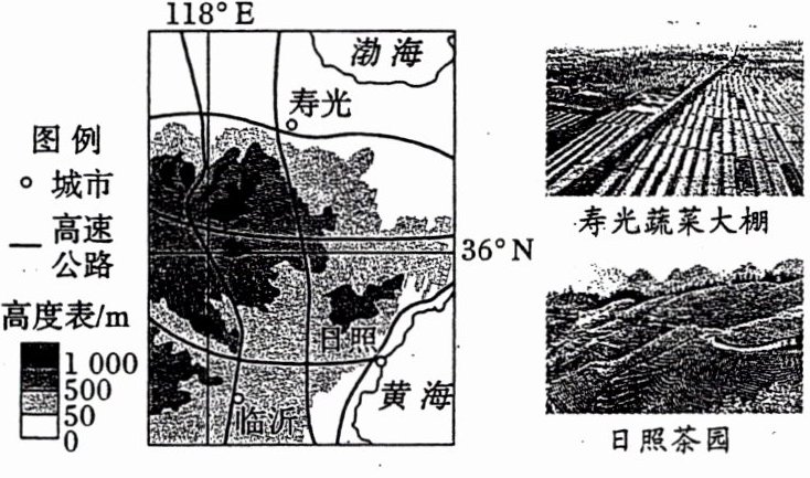 (1)说明寿光成为我国重要蔬菜供应地的有利条件。(6分)茶树一般生长在热带、亚热带湿润地区。山东日照市原本无茶树生长,通过“南茶北引”,现已成为“中国北方绿茶之乡”。与南方产区相比,当地气候条件独特,茶树生长缓慢,生产的绿茶具有叶片厚、香味浓、耐冲泡的特点。