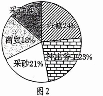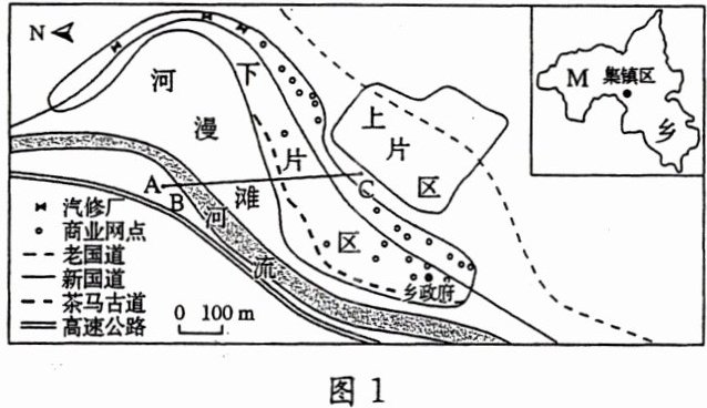 M乡位于我国西南山区,其集镇区由上下两片区组成(图1)。上片区主要为居住区,居民多从事农业活动;下片区为乡政府所在地,居民主要从事联系松散的非农业活动,图2示意下片区居民主要收入来源。历史上的茶马古道从下片区内的河流一级阶地经过。