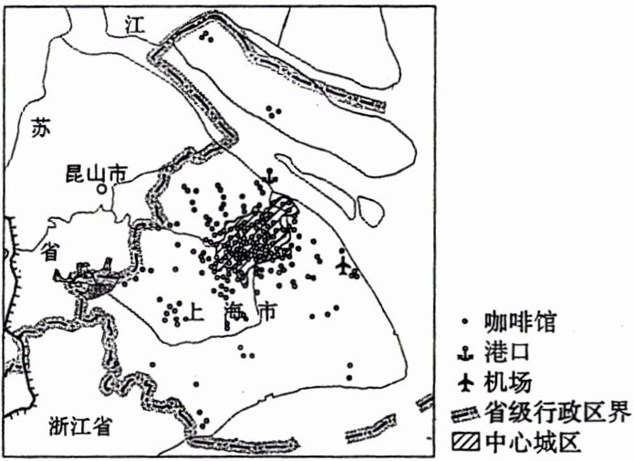 (2)据图描述该品牌咖啡馆在上海的空间分布特征。(4分)