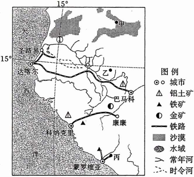 材料 下图为非洲部分区域略图,该区域矿产资源丰富,大部分矿产品通过海运出口。